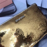 5NH81C MIUMIU专柜新款 手工珠刺绣 亮片单肩手拿包 金色