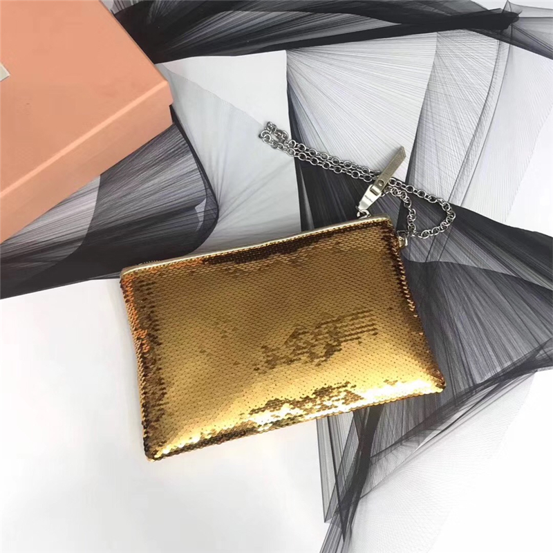 - 5NH81C MIUMIU专柜新款 手工珠刺绣 亮片单肩手拿包 金色