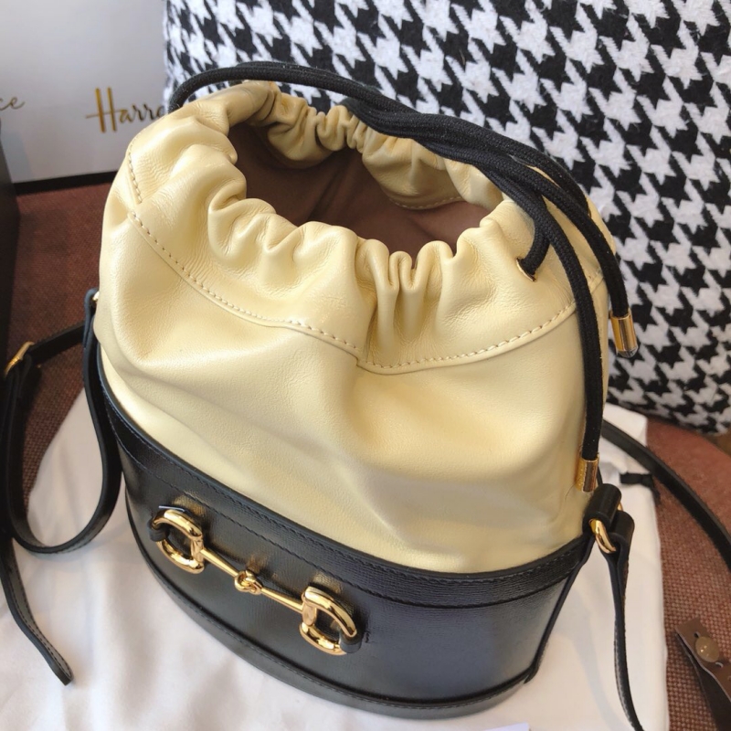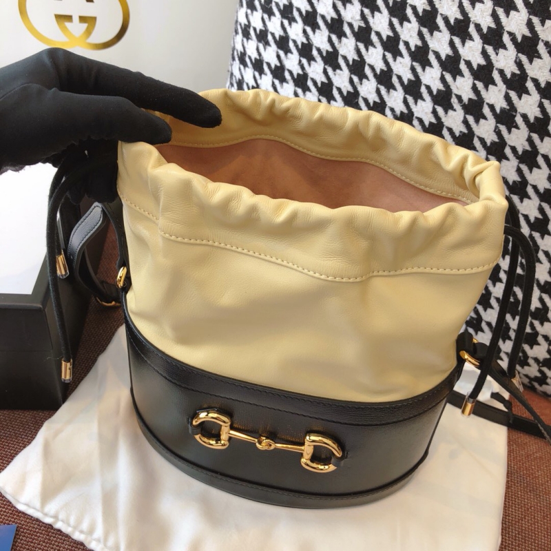 - 602118 Gucci 马衔扣1955系列水桶包 古驰水桶包 黑配黄