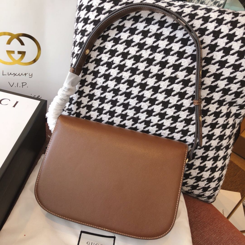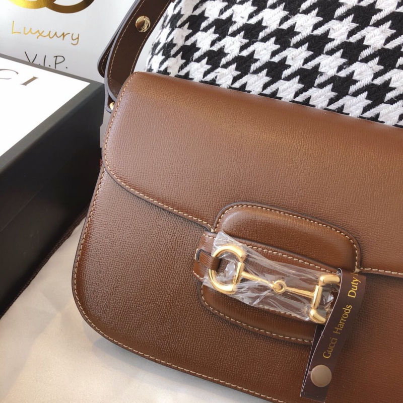 - 602204 Gucci 1955马衔扣肩背包 Gucci马鞍包 棕色复古格织纹皮革