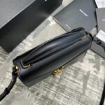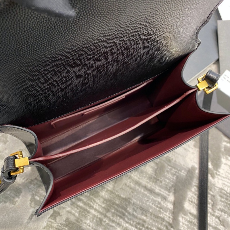 - 详细介绍:前翻盖和YSL字母标志金属旋扣手袋,内部具有鲜明对比效果,搭配一个顶部皮革手柄,以及一条可调节可拆卸肩背带。