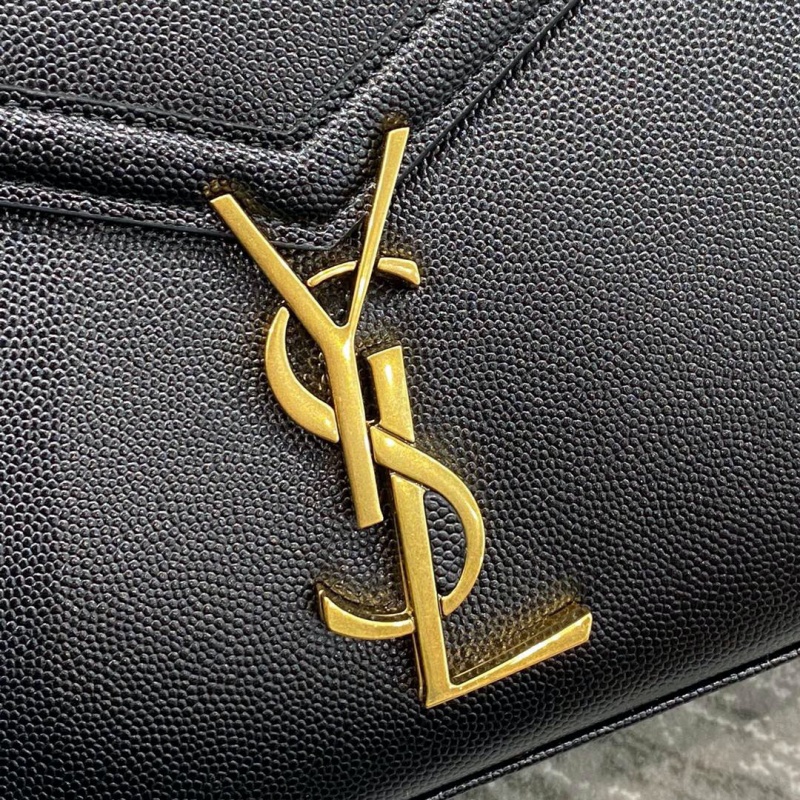 - 结构:古铜色金属配件皮革衬里YSL旋扣开合设计内部:两个主隔层和一个平袋