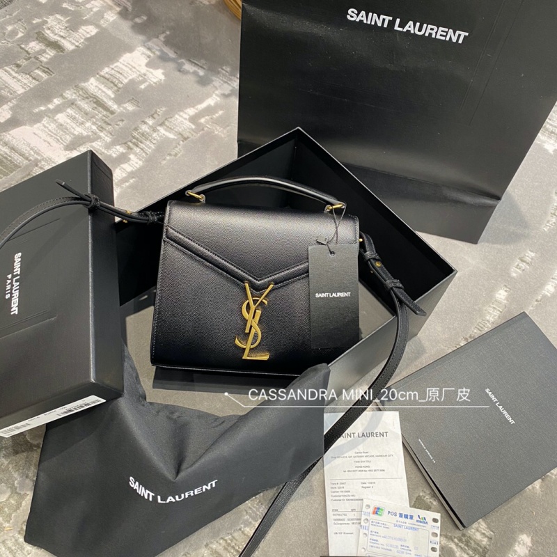 - 602716 YSL圣罗兰 CASSANDRA迷你粒面压印皮革手提包 黑色