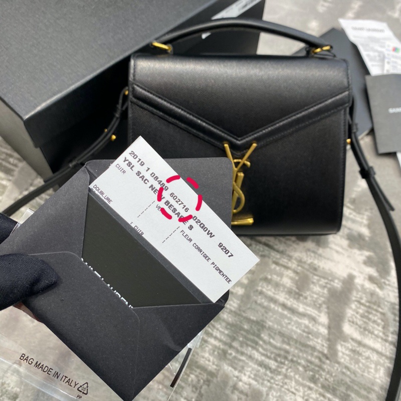 602716 YSL圣罗兰 CASSANDRA迷你粒面压印皮革手提包 黑色