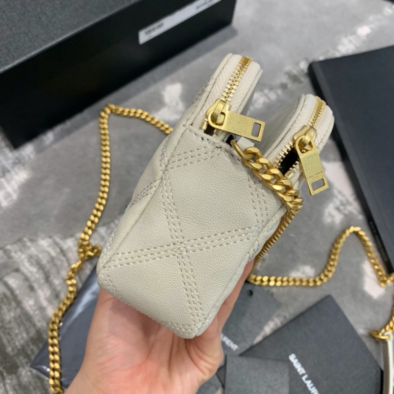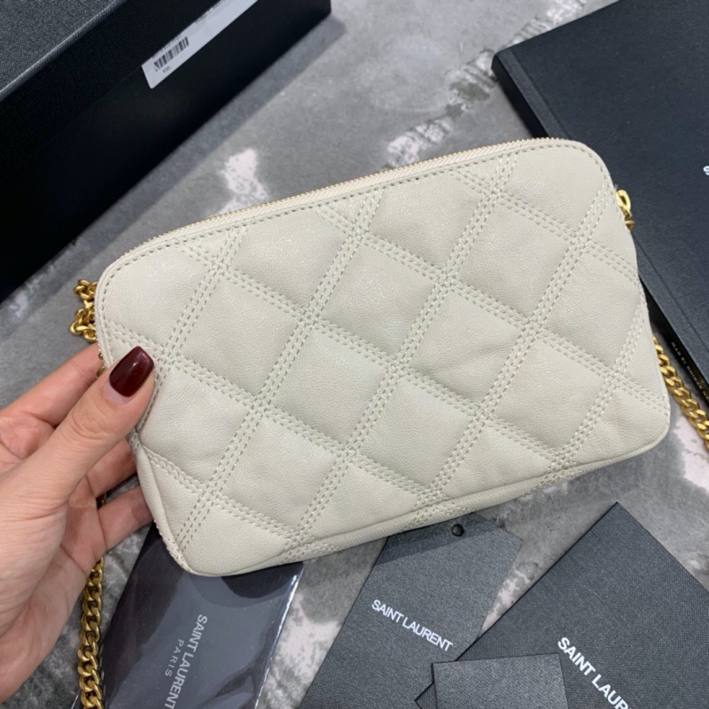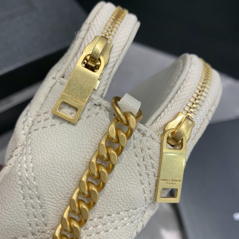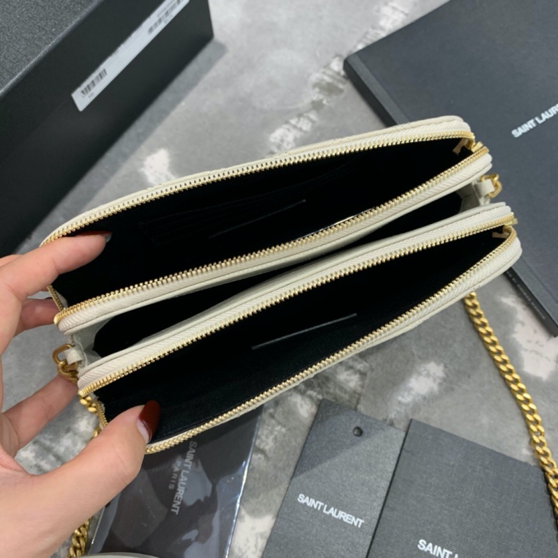 6089411 YSL圣罗兰 BECKY双拉链绗缝小羊皮手拿包 YSL包包 白色