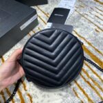 - 610436 YSL圣罗兰 VINYLE V形纹绗缝光滑皮革圆形相机包 黑色黑扣