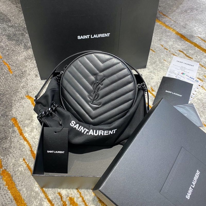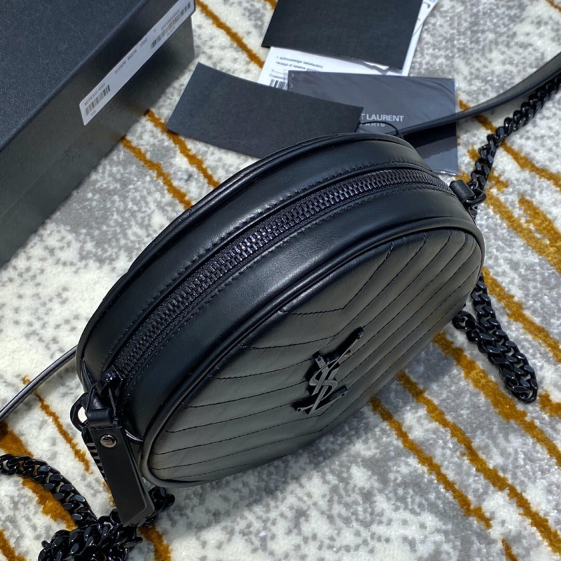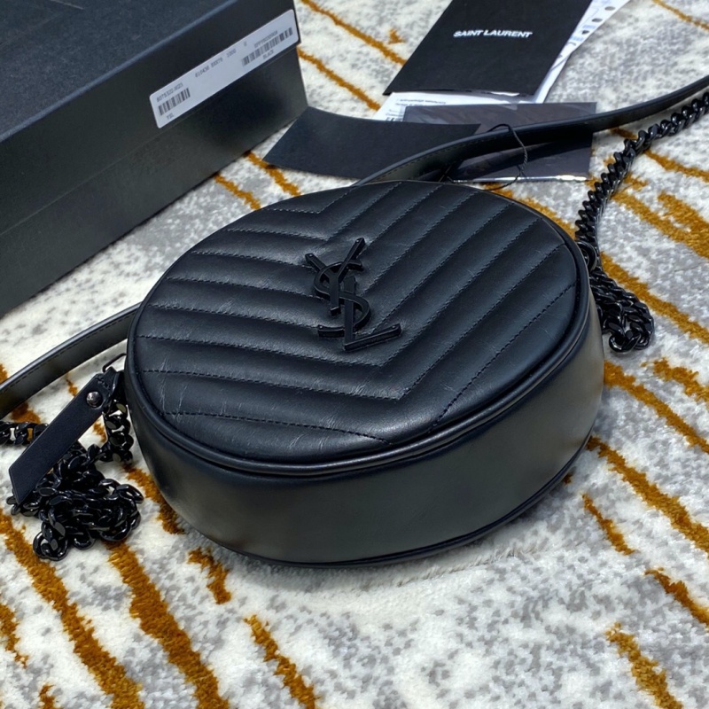 610436 YSL圣罗兰 VINYLE V形纹绗缝光滑皮革圆形相机包 黑色黑扣