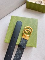 - 627055 Gucci双G带扣双面腰带 黑色GG Supreme帆布男士皮带 金扣