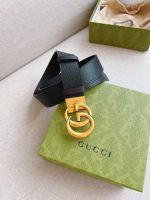 - 627055 Gucci 双G带扣双面腰带 GG Marmont系列黑色男士皮带 金扣