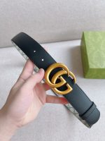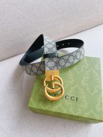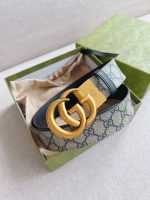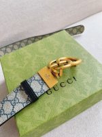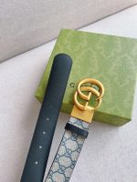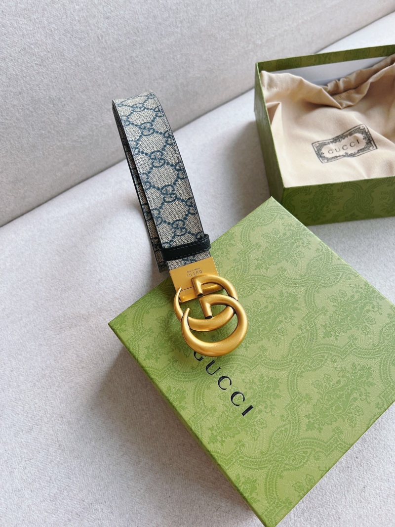 • 627055 Gucci 双G带扣双面腰带 GG Supreme蓝色帆布男士皮带 金扣