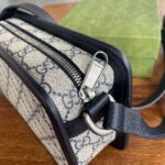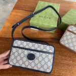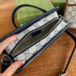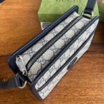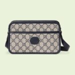 - 结构:米色和蓝色GG Supreme帆布,环保材料 蓝色皮革滚边 绒面材质质感超细纤维衬里 皮革互扣式双G贴饰 最大可容纳的手机尺寸:167毫米(长)x76毫米(宽)x9毫米(厚) 1个外部口袋,2个纽扣固定的内部翻盖口袋 可调节皮革背带(50厘米高) 拉链开合