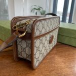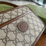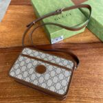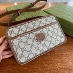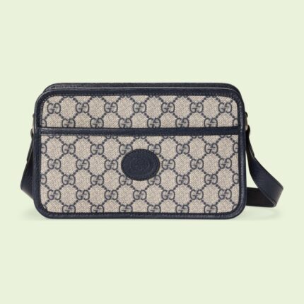 - 结构:米色和乌木色GG Supreme帆布,环保材料,饰棕色皮革滚边 皮革互扣式双G贴饰 最大可容纳的手机尺寸:167毫米(长)x76毫米(宽)x9毫米(厚) 1个外部口袋,2个纽扣固定的内部翻盖口袋 可调节皮革背带(50厘米高) 拉链开合 麂皮质感超细纤维衬里