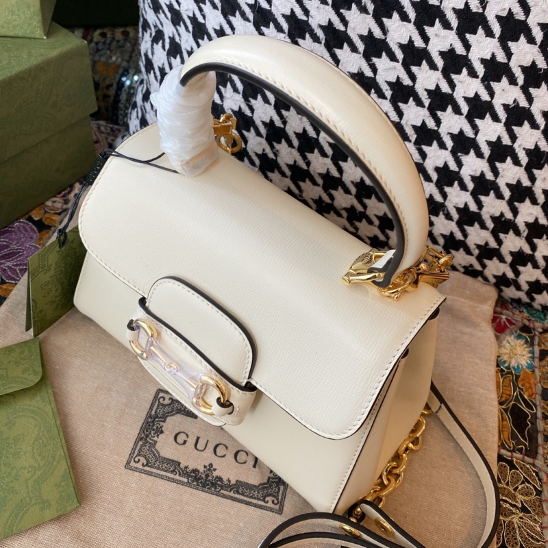 - 703848 Gucci Horsebit 1955系列迷你手袋 古驰女士单肩手提包 白色