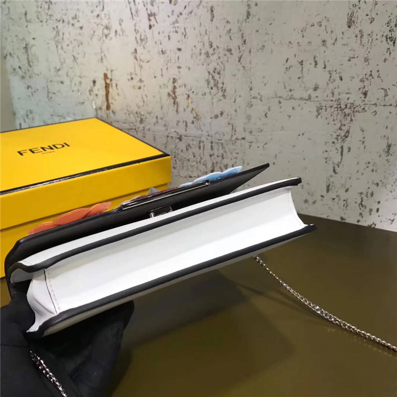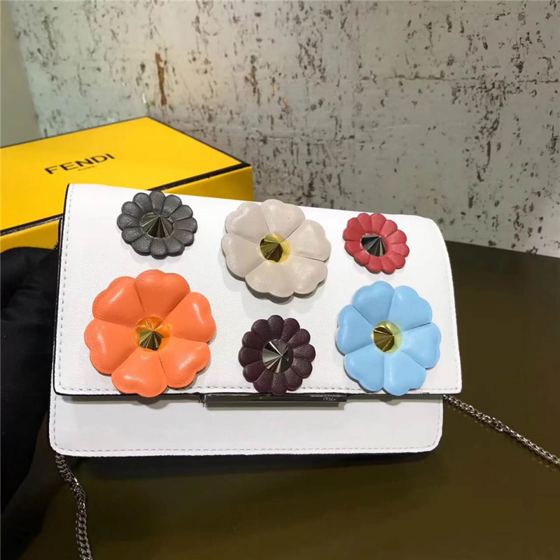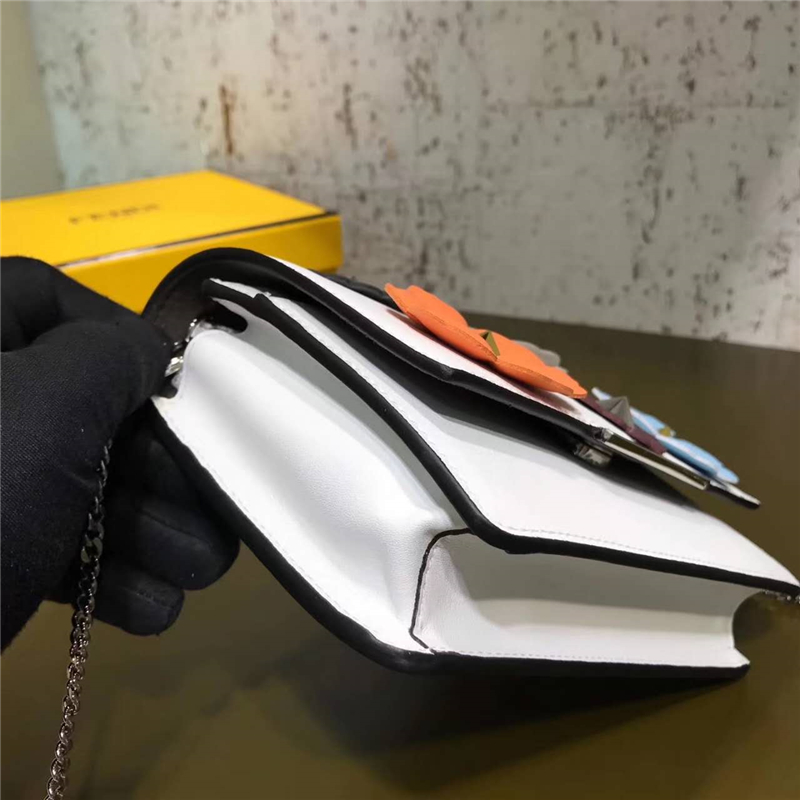 - 7346 FENDI 芬迪 拼色花朵装饰 柔软小牛皮 链条肩包 白色