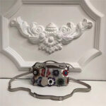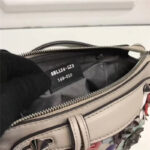 - 结构:正面饰以同色系花朵铆钉装饰,金属饰钉的双提手和可拆卸肩带。顶部拉链和内袋