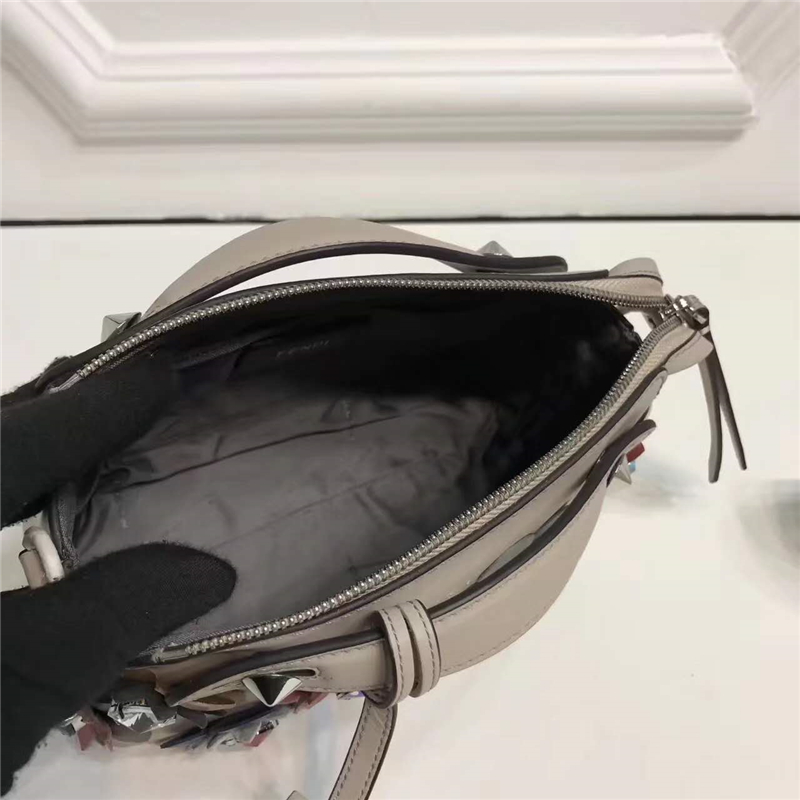 - 8149BS FENDI 芬迪 波士顿小牛皮 彩色花朵铆钉饰 手提包挎包 杏色
