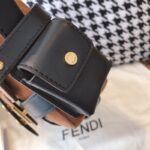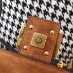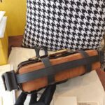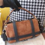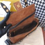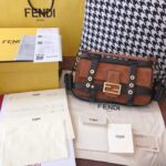 8BR778 FENDI芬迪 棕色麂皮中号黑色皮革绑带单肩包 Fendi法棍包