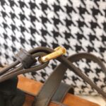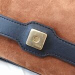- 结构:可拆卸的链条手柄使它既可以手戴也可以戴在肩上。衬里内部饰有拉链袋。棕色绒面革制成。黑色皮革细节。金色饰面的金属配件。