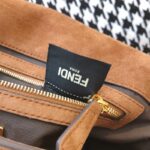 - 8BR778 FENDI芬迪 棕色麂皮中号黑色皮革绑带单肩包 Fendi法棍包