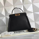 9210M FENDI 芬迪 边缘编织装饰 柔软小牛皮手提包 黑色