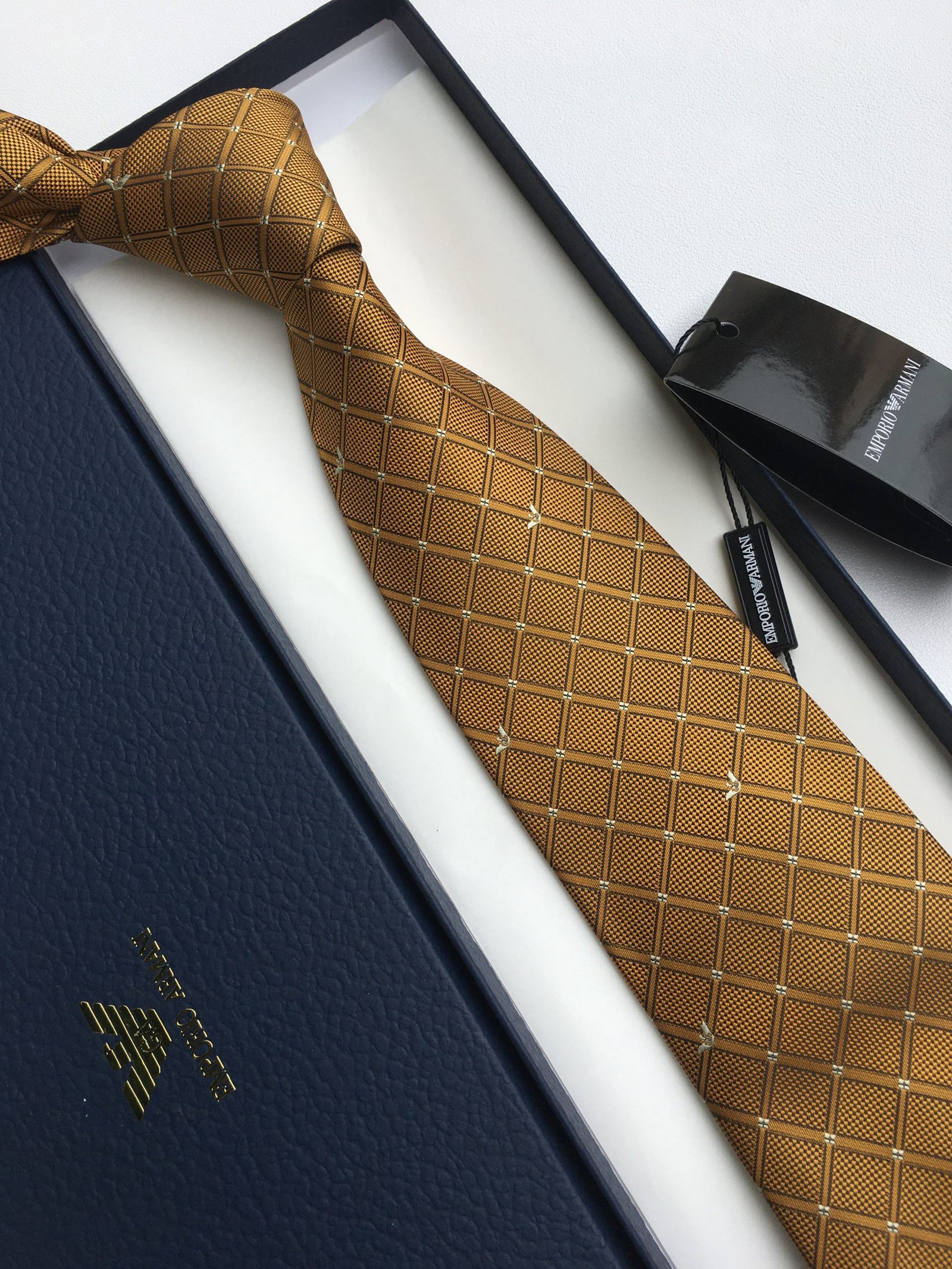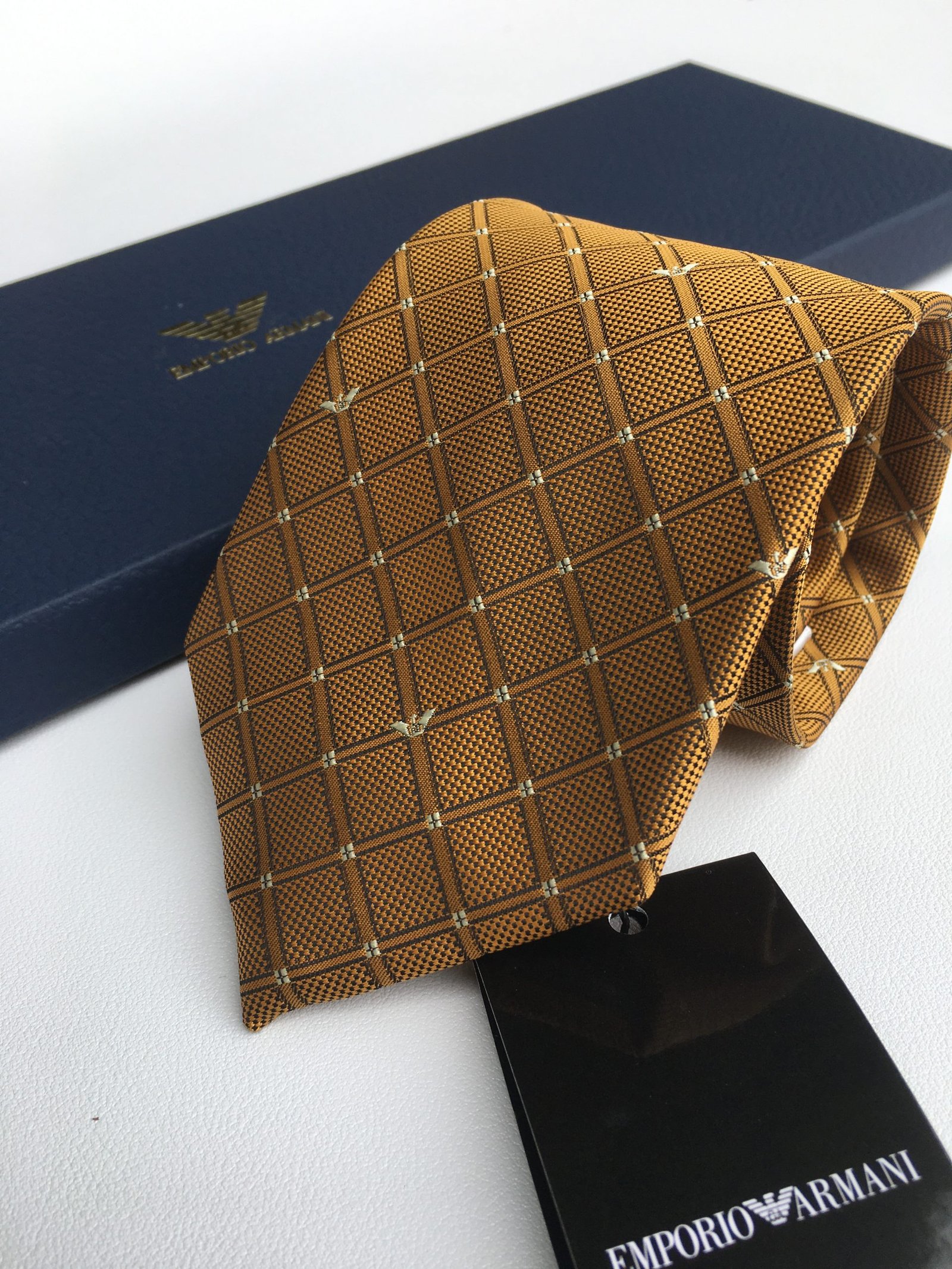 Armani 格纹真丝领带 深黄色 Armani 男士领带