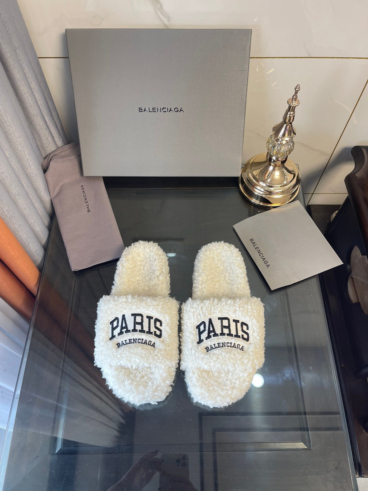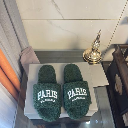 Balenciaga 女式毛茸茸拖鞋白色