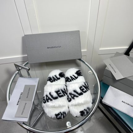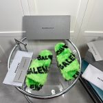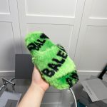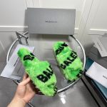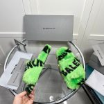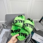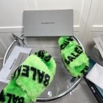 Balenciaga 女式毛茸茸拖鞋通体标志绿色