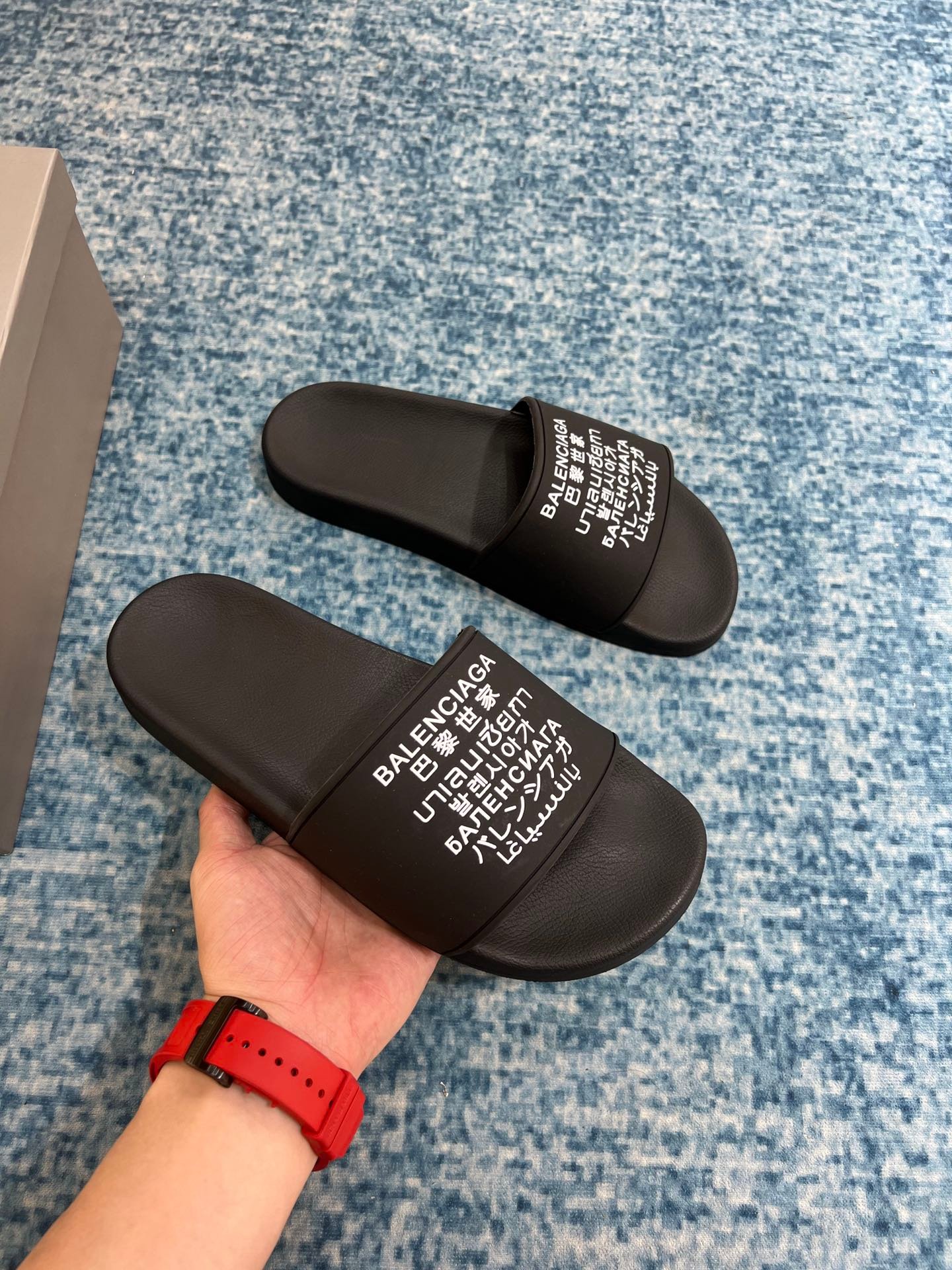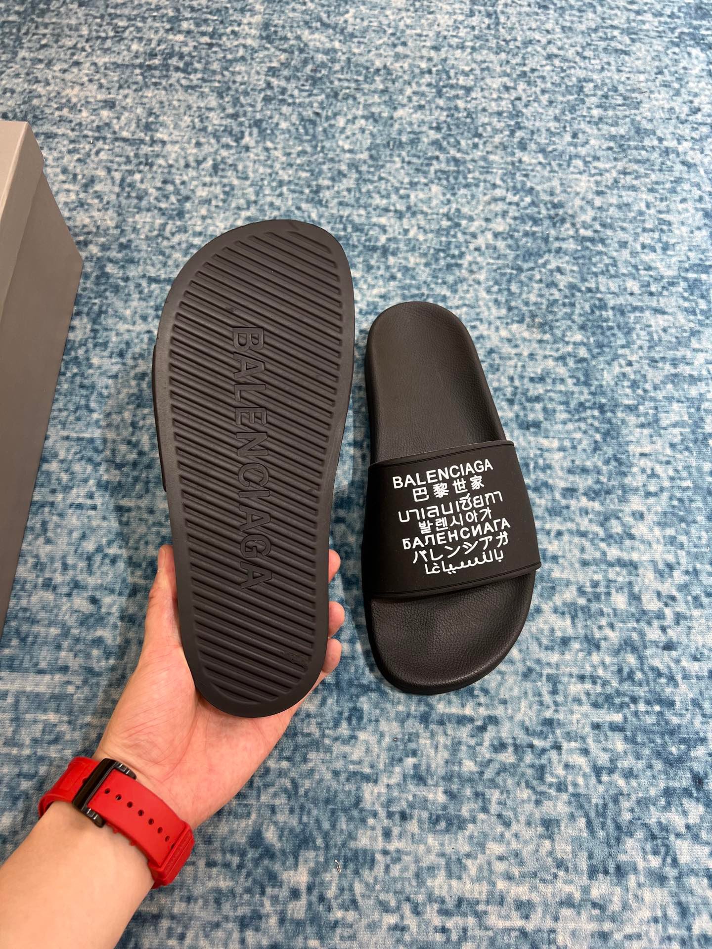 Balenciaga 男士泳池拖鞋黑色