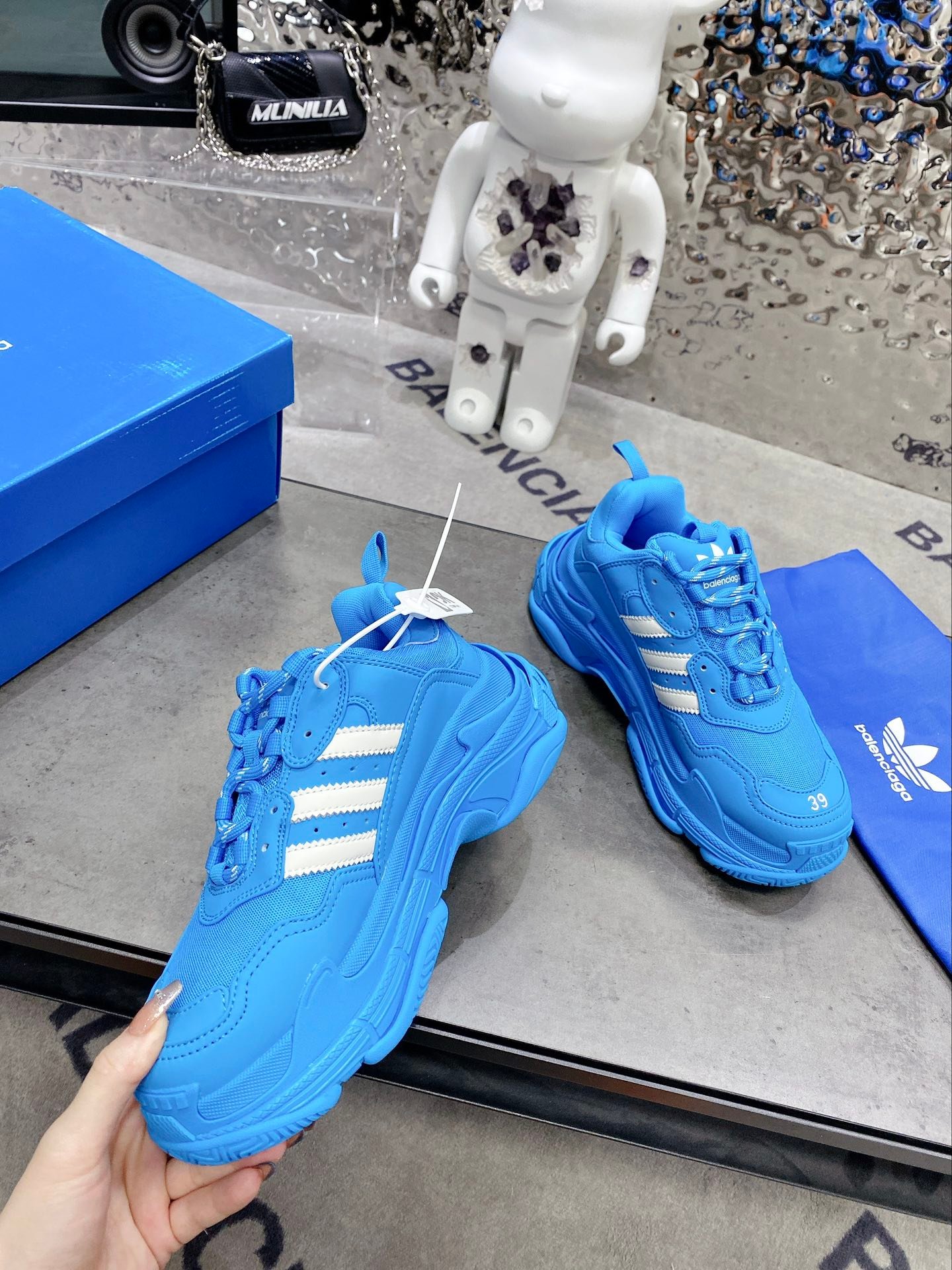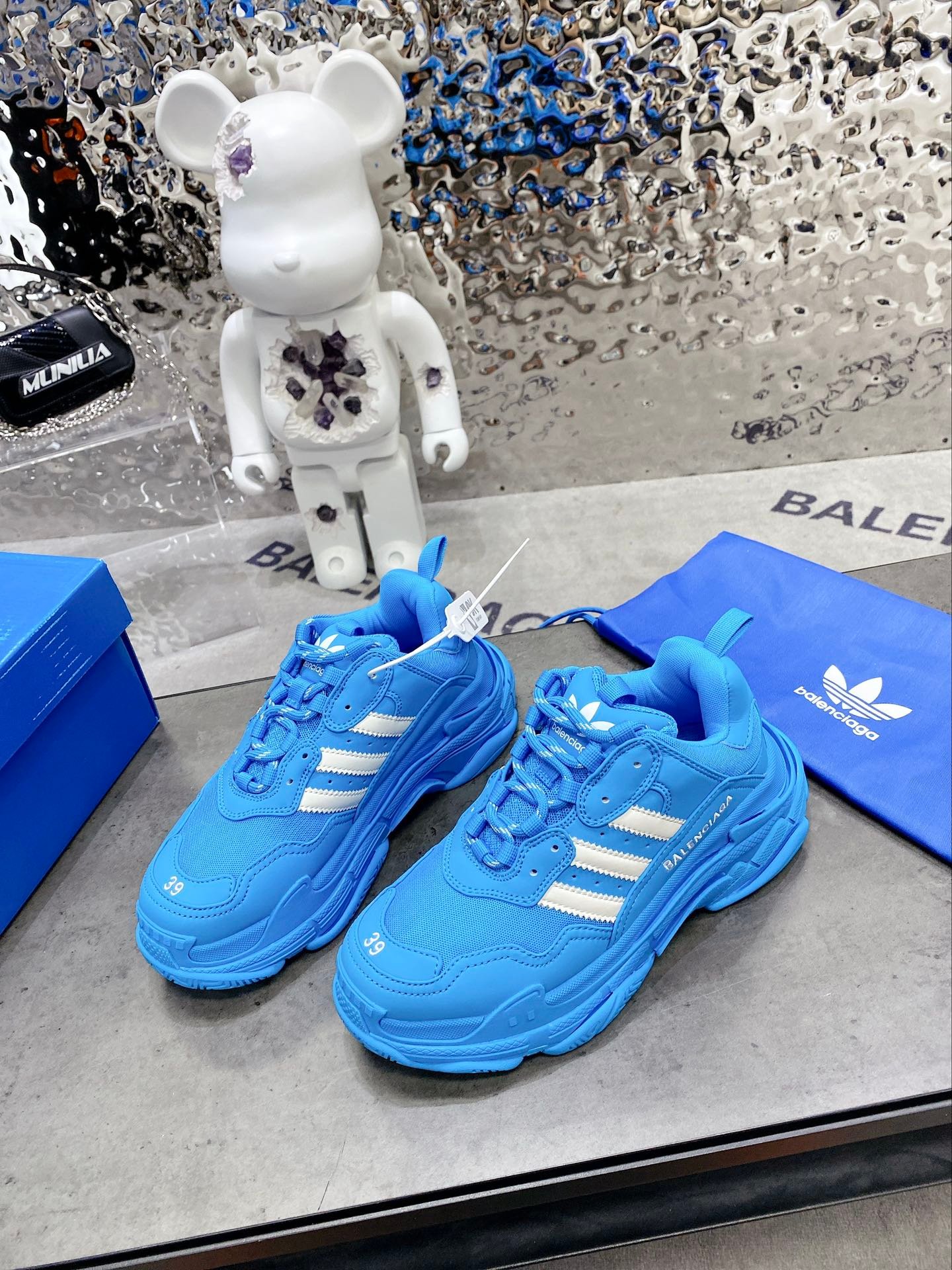 Balenciaga x Adidas Triple s 女式透明鞋底蓝色运动鞋