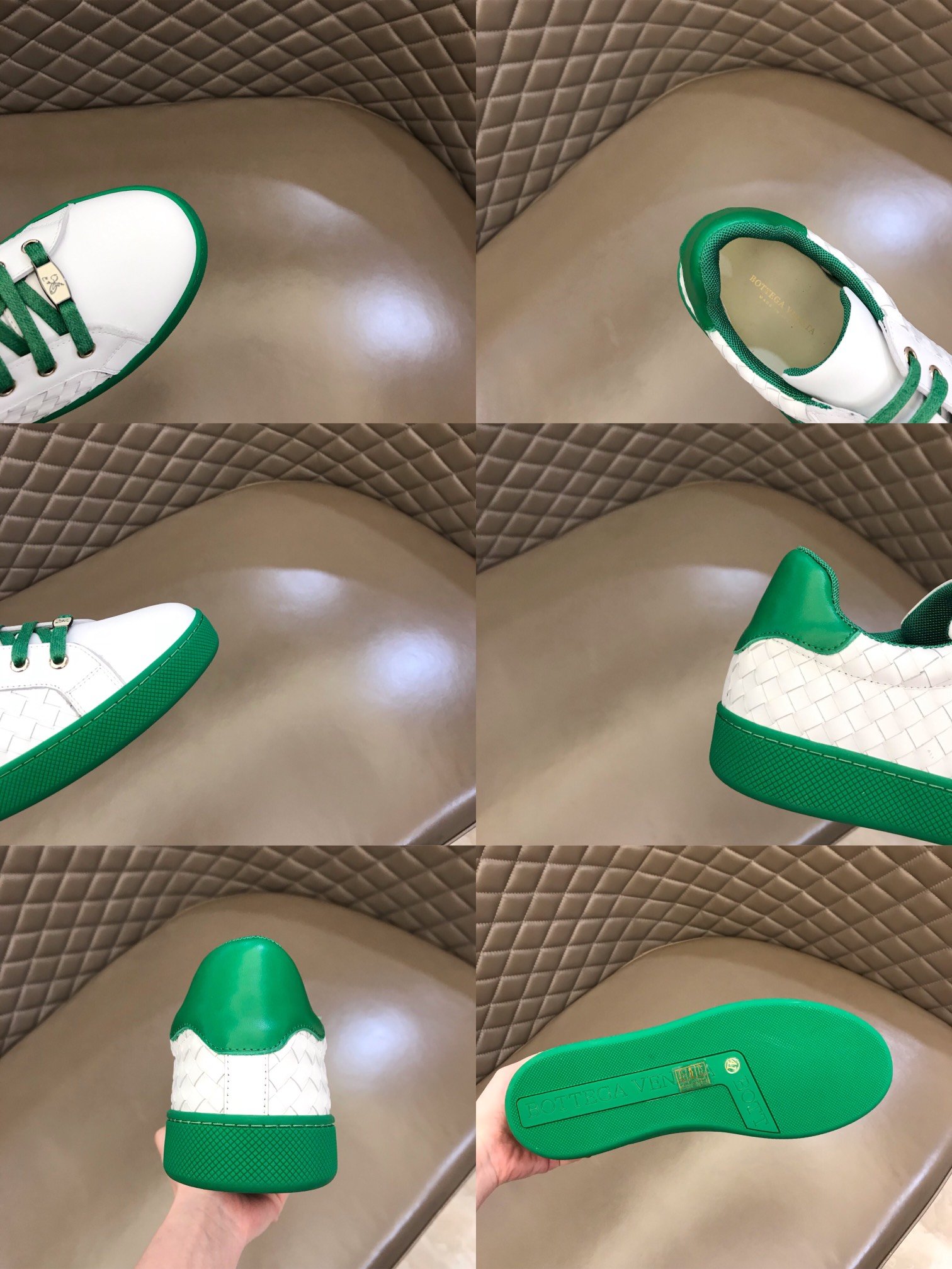 Bottega Veneta 男士带徽标绿色运动鞋白色和绿色男士 85024