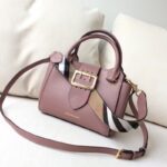 - Burberry巴宝莉 专柜新款 小号 翻盖金属带扣 手提肩背包 豆沙色
