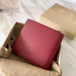 - Burberry巴宝莉 全皮压花徽章 双折短款 拼色钱夹 酒红色