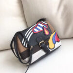 - Burberry巴宝莉 帆布 休闲大容量 涂鸦 斜跨单肩包 黑色