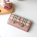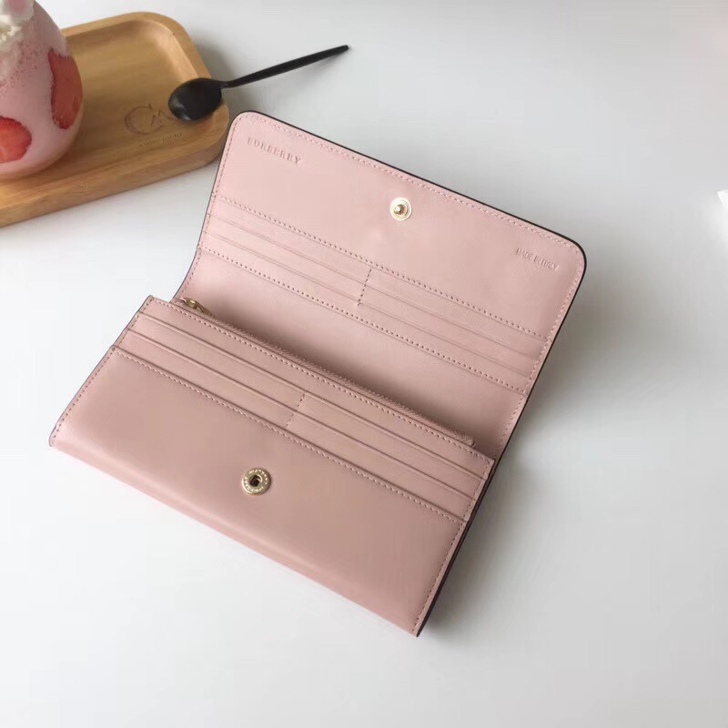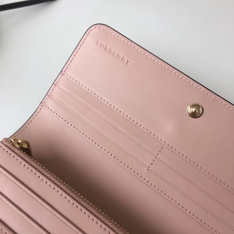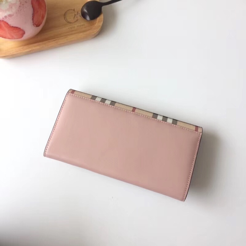 - Burberry巴宝莉 格纹按扣 蝴蝶结 战马印花 女士长款钱包 裸粉