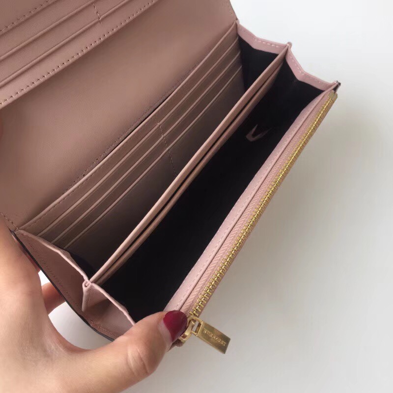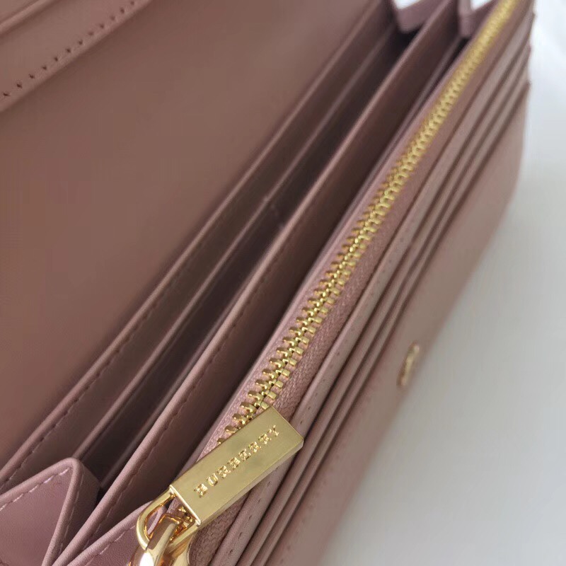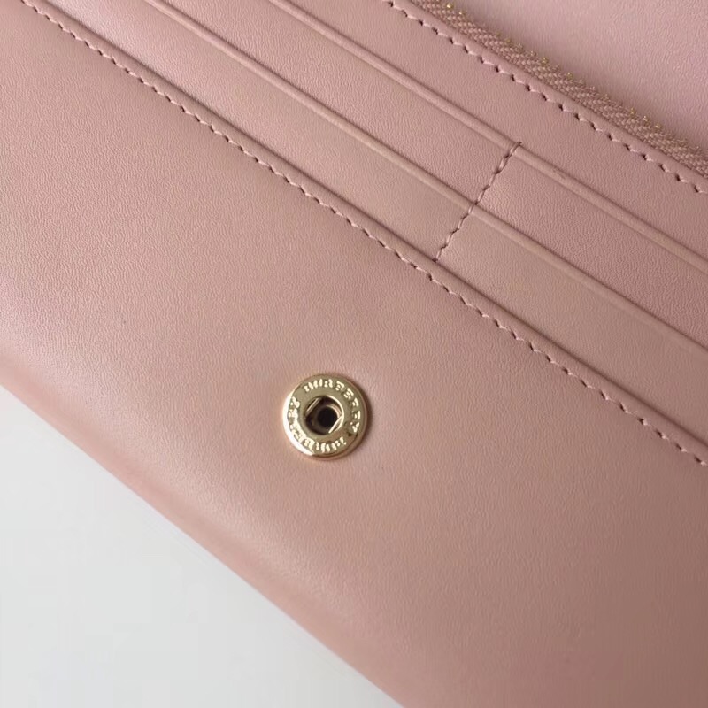 Burberry巴宝莉 格纹按扣 蝴蝶结 战马印花 女士长款钱包 裸粉