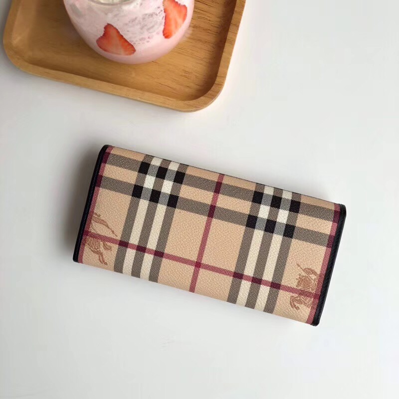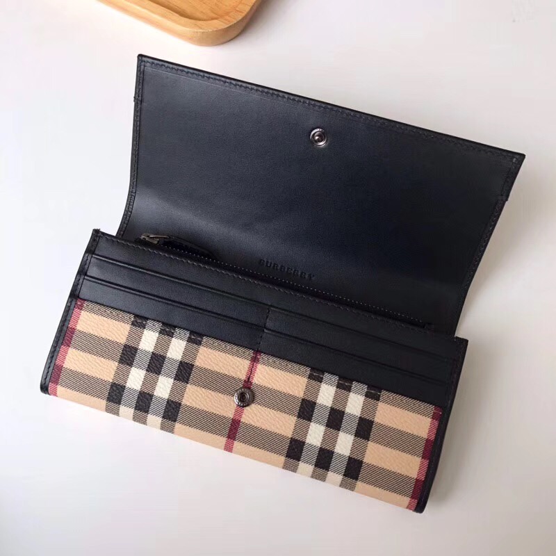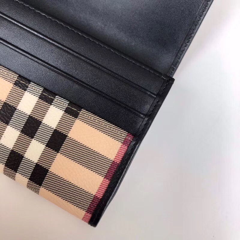 Burberry巴宝莉 经典格纹按扣 战马印花 女士长款钱包 黑色
