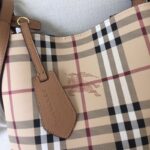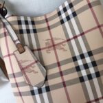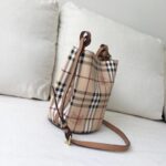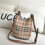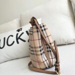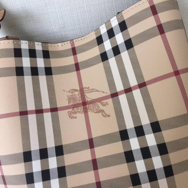 - Burberry巴宝莉 Haymarket格纹 战马印花 拼色皮革 水桶包 浅棕