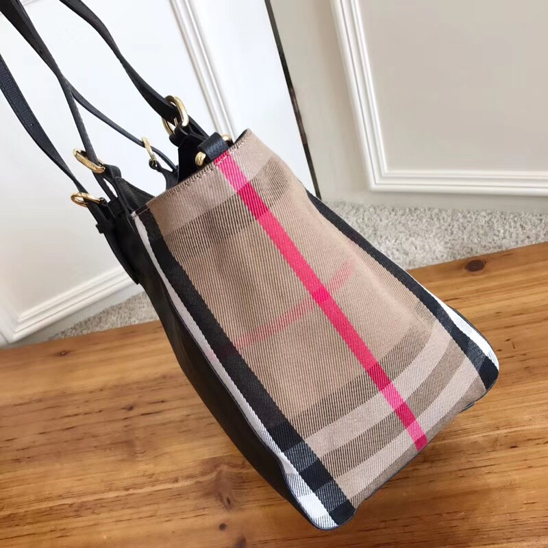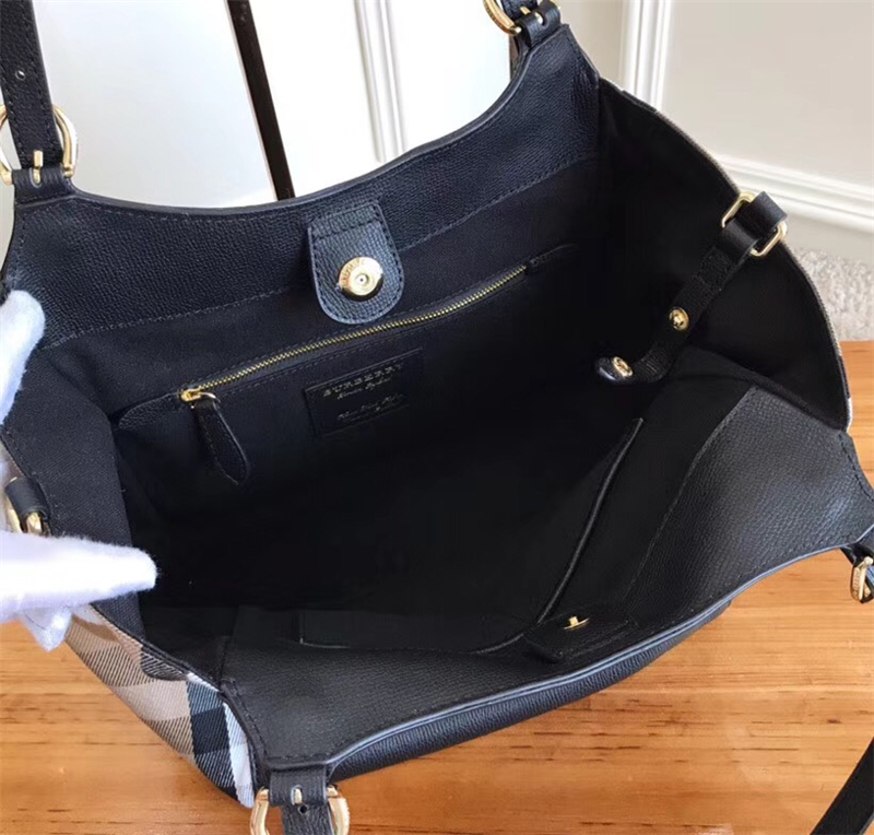 - Burberry巴宝莉 The Canter坎特手袋 House 格纹单肩手提包 黑色