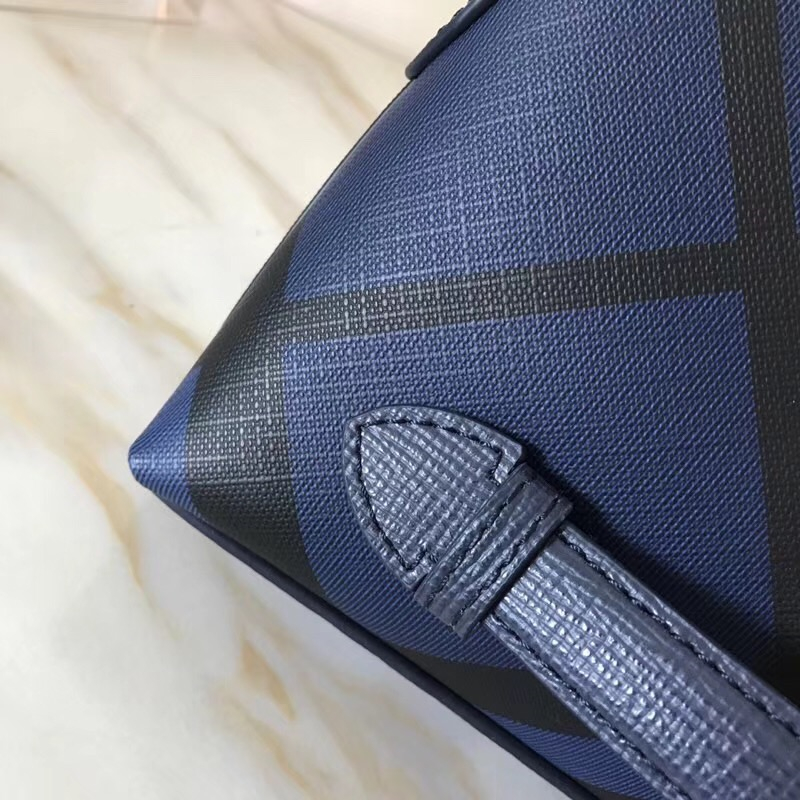 Burberry新款男包 小牛皮London格纹 多功能 巴宝莉男士手拿包 蓝色