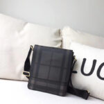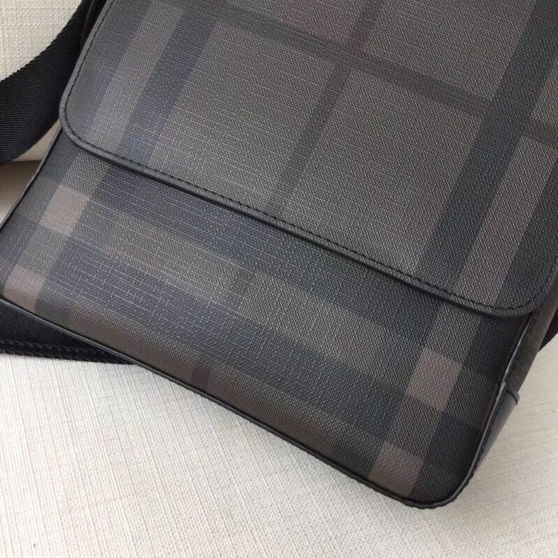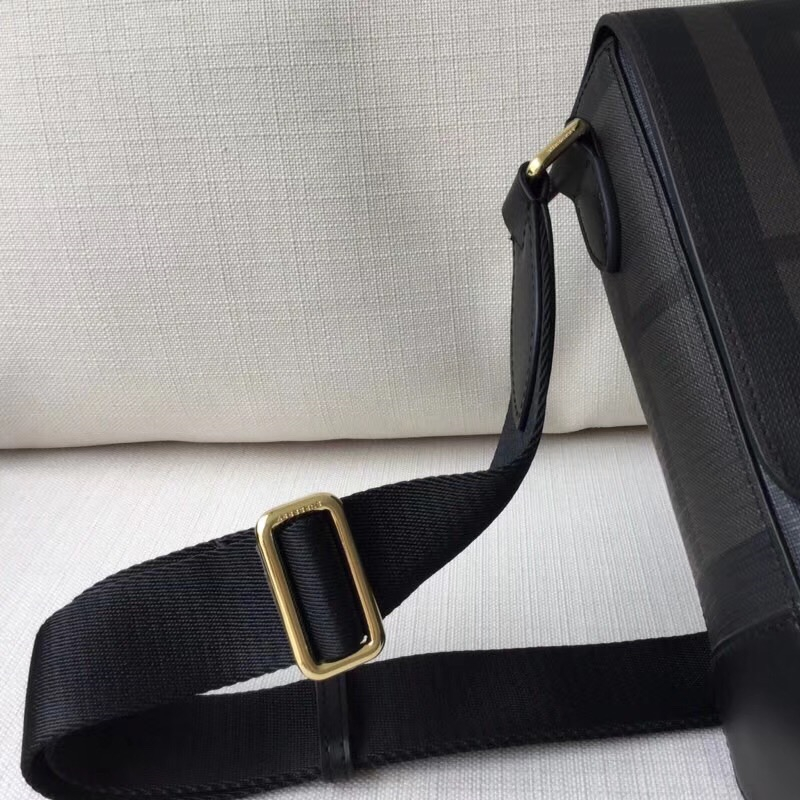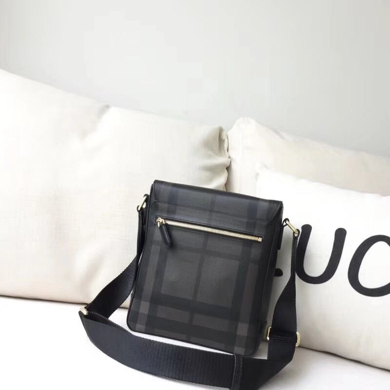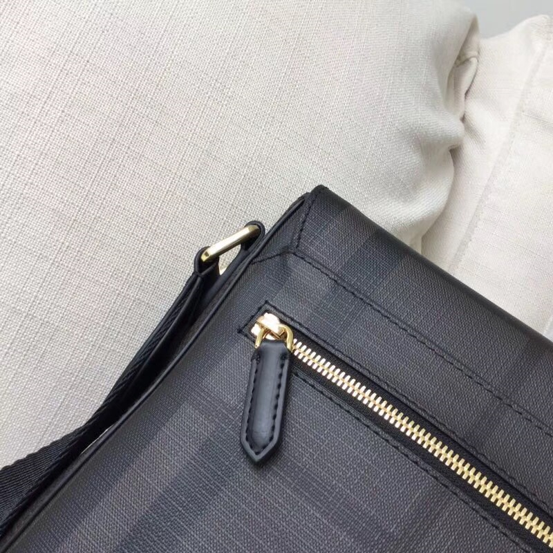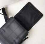 - Burberryn男包 烟熏格纹 巴宝莉邮差包 商务休闲 竖款 单肩斜挎包 黑色