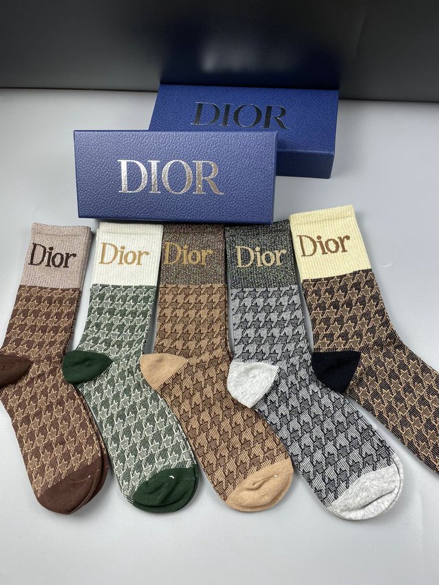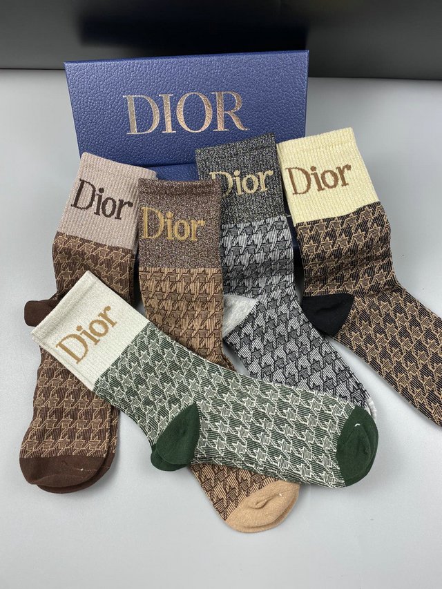 CD 袜子 Dior Oblique 灰色/黑色/米色/绿色/棕色 – 5 双