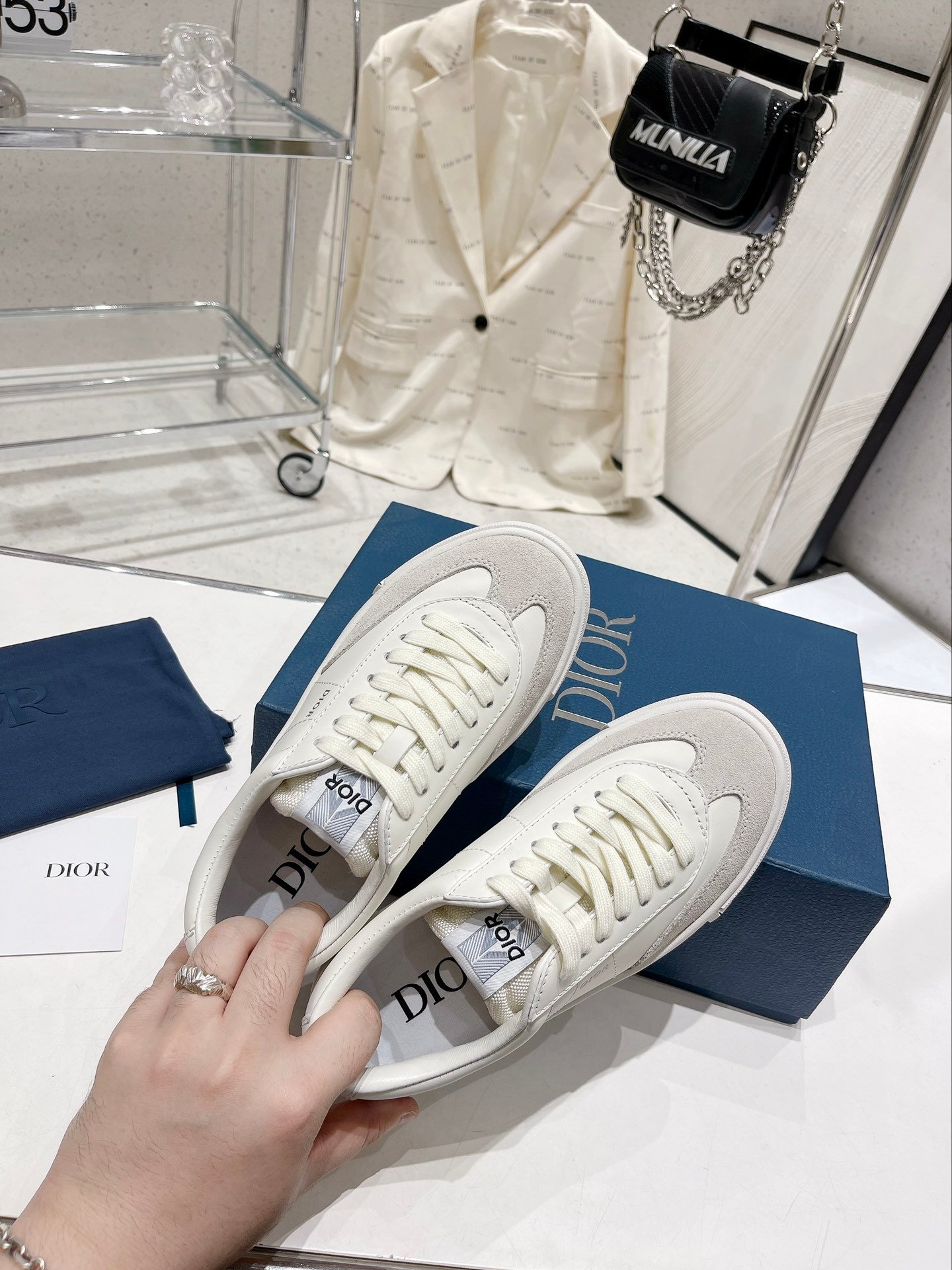 CD B101 运动鞋作为本季衣柜经典单品亮相。带衬垫鞋舌,背面和侧面饰有 CD Diamond 和 DIOR 标志。搭配成型的同色系外底,非常适合搭配牛仔裤或西装裤,打造休闲