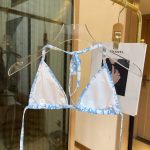 这款泳衣展示了 Dior Oblique 图案,这是自 1967 年问世以来一直是品牌标志的标志。低腰款式采用科技面料精制而成,可调节侧系带确保完美贴合,而蜜蜂刺绣则增添了经典的 Dior 风格。这款比基尼上衣采用三角形剪裁,配有带子,可系在颈部和背部,以实现定制合身。比基尼上衣与相配的下装完美搭配,打造出整体造型。