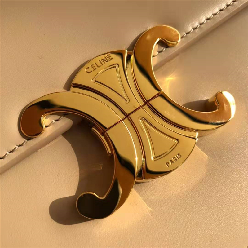 - Celine包包 赛琳女包 Triomphe系列 倒双C黄铜锁 中号 米黄色