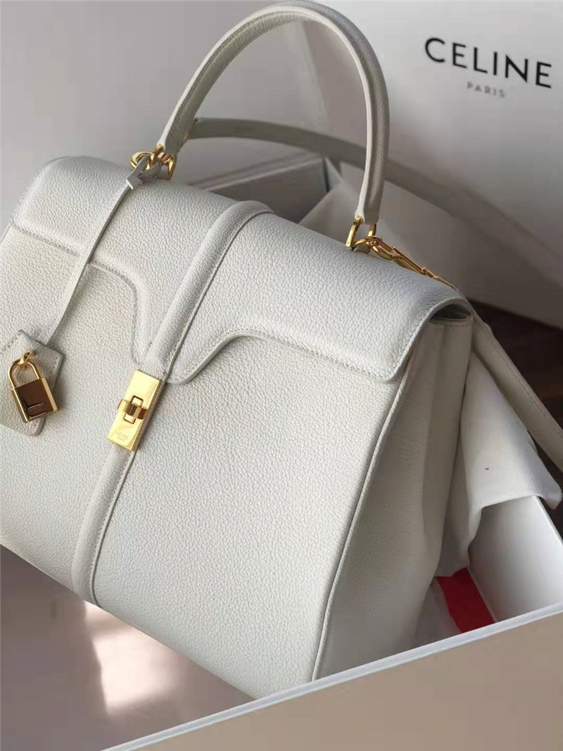 - Celine包包 赛琳女负 19新款 金属锁扣 中号小牛皮包 Celine手提包女包 白色