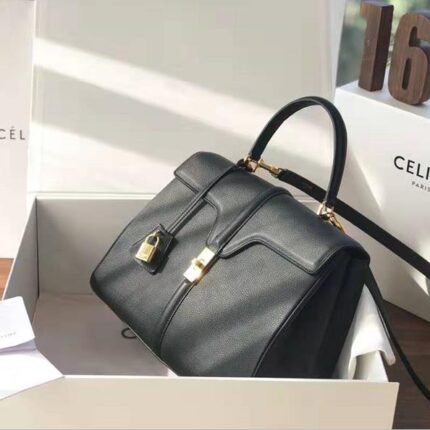 Celine包包 赛琳女负 19新款 金属锁扣 中号小牛皮包 Celine手提包女包 白色