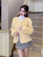 Celine 女式粒面天鹅绒羊毛夹克黄色