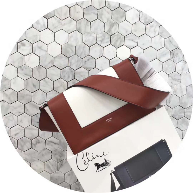 - Celine 赛琳 Frame 新款 亮泽光滑小牛皮 拼色单肩包 棕配白