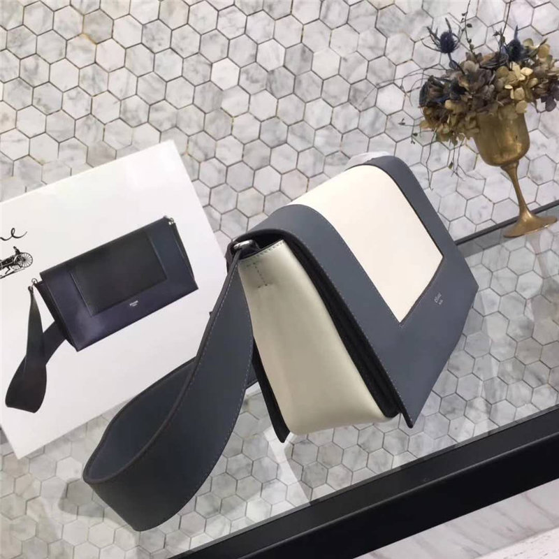 Celine 赛琳 Frame 新款 亮泽光滑小牛皮 拼色单肩包 灰配白