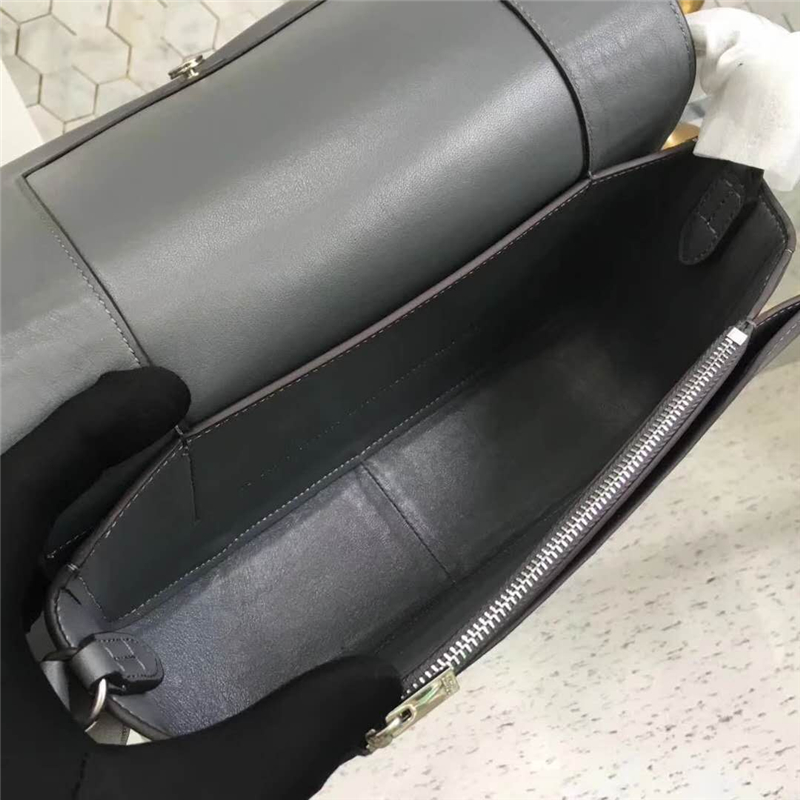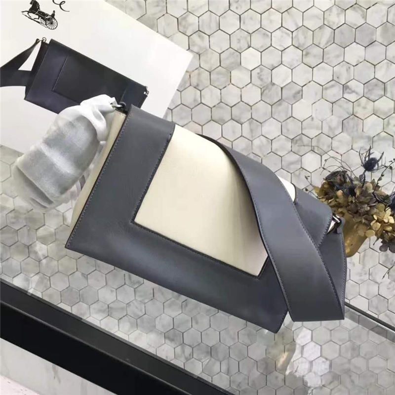 - Celine 赛琳 Frame 新款 亮泽光滑小牛皮 拼色单肩包 灰配白